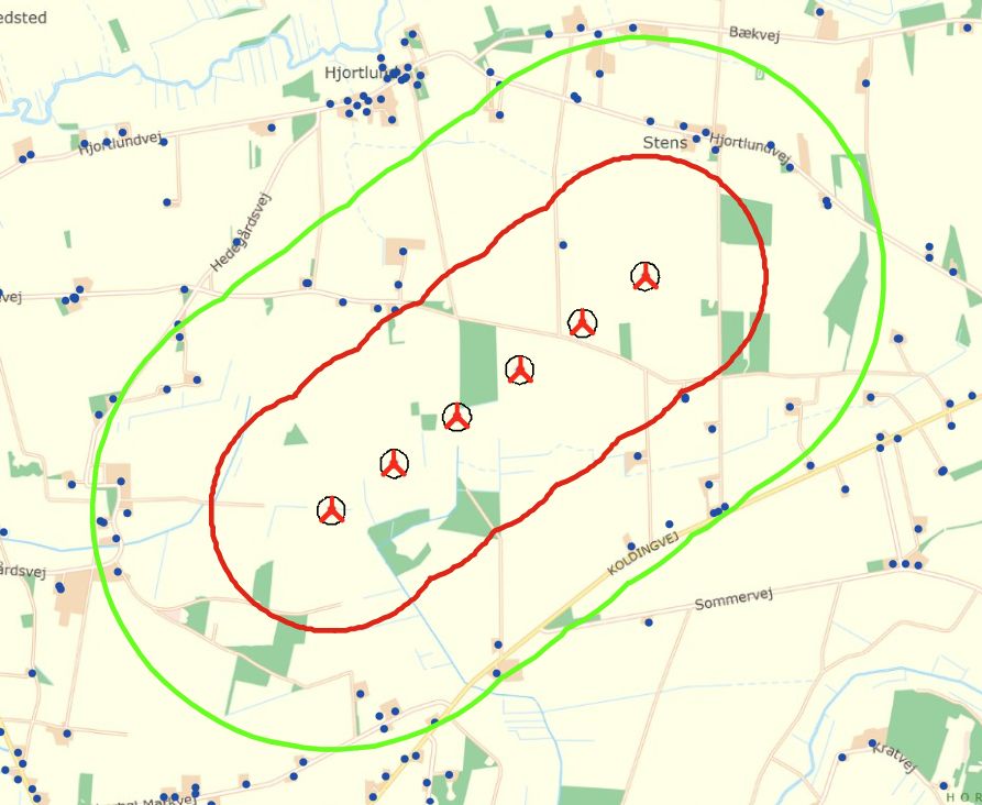 Orienteringen om værditabsmødet, hvor VE-bonus også vil blive gennemgået, vil blive sendt til alle naboer i nær- og mellemzonen. Det vil sige ud til 10 km for en 150 meter høj vindmølle, samt ud til 1,5 km ved et rent solcelleanlæg.